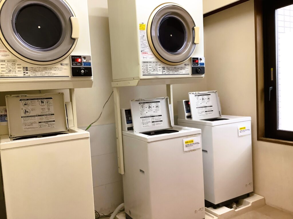 洗濯機3台、乾燥機2台あり。100円硬貨使用。利用時間6:00~翌0:00。両替はフロントにて承っております。